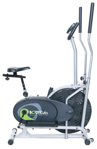 This patented 2-in-one Cardio Dual Trainer is used as an Elliptical Trainer or an Exercise Bike. The high momentum fan blades provide quiet and smooth rides with zero impact to your knees. The motivational electronic display console measures Time, Speed, Distance, and Calories Burned while you exercise. Use it only 20 minutes a day, 3 to 4 times a week, you will get the results that you always wanted.Enjoy a total body cardio workout without trudging to the gym day after day with the Body Rider BRD2000 dual cardio trainer. The BRD2000 is actually two fitness machines in one, with a pair of elliptical arms and foot pedals for upright elliptical use, as well as an adjustable seat that turns the machine into an exercise bike. As a result, users can vary their workout routines depending on the goals they're trying to achieve. The BRD2000 is built around a chain-driven fan wheel, with high-momentum fan blades that run quietly and smoothly without impacting your knees. (The fan also produces a gentle breeze as you exercise.) The electronic console, meanwhile, makes it easy to track your workout, with measurements for time, speed, distance, and calories burned. Finally, the unit's seat adjusts vertically and horizontally to fit users of different heights and weights. Too busy to hit the gym on a regular basis? The BRD2000 will help you see results in only 20 minutes per day three or four times a week.